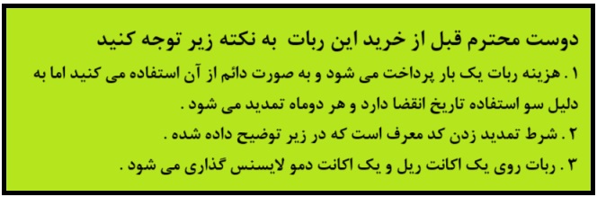 ۳ . ربات هر دو ماه تاریخ انقضا میشه و شرط تمدید (کار با ربات و زدن کد معرف) است